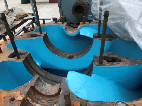5、刷涂防汽蚀节能降耗涂层的泵座。